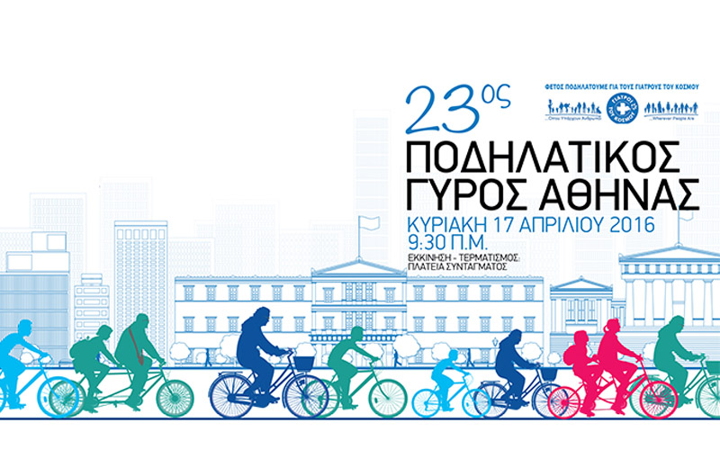 Ανοίγουν τη Δευτέρα 11 Απριλίου οι εγγραφές του 23ου Ποδηλατικού Γύρου της Αθήνας στις εξωτερικές μονάδες του Οργανισμού Πολιτισμού Αθλητισμού και Νεολαίας του Δήμου Αθηναίων. Ο 23ος Ποδηλατικός Γύρος της Αθήνας διοργανώνεται από το Δήμο Αθηναίων και τον Οργανισμό Πολιτισμού, Αθλητισμού και Νεολαίας την Κυριακή 17 Απριλίου με εκκίνηση από την πλατεία Συντάγματος στις 09:30 για τη διαδρομή των 11,5χλμ., στις 09:50 για τα 3χλμ και στις 09:45 για τη διαδρομή του 1,1χλμ. για Α.με.Α με εκκίνηση από τα Προπύλαια. Ο Ποδηλατικός Γύρος αντικατοπτρίζει την κοινωνική προσπάθεια του Οργανισμού και έχει έναν ιδιαίτερο σκοπό: όσοι συμμετέχοντες επιθυμούν καταβάλλουν για τη συμμετοχή τους 1€, με το οποίο ενισχύεται οικονομικά ο ξενώνας των Γιατρών του Κόσμου. Νέα σημεία εγγραφών:
