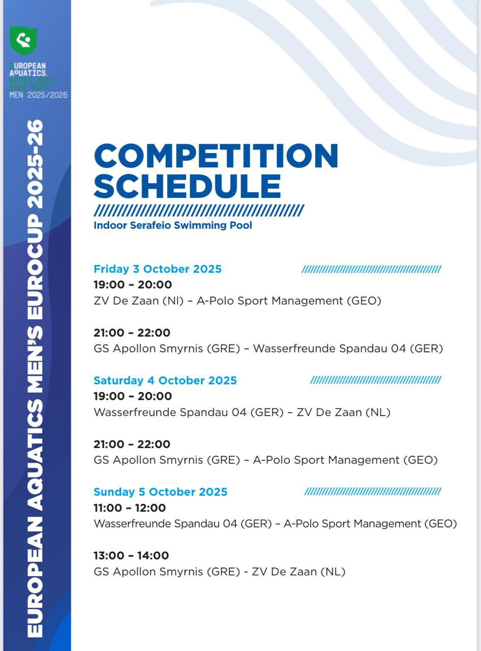 Ο ΟΠΑΝΔΑ ενημερώνει το κοινό ότι, λόγω της φιλοξενίας της ευρωπαϊκής διοργάνωσης υδατοσφαίρισης EUROCUP 2025-2026, το ωράριο λειτουργίας του Σεράφειου Κολυμβητηρίου θα τροποποιηθεί το τριήμερο 3, 4 και 5 Οκτωβρίου 2025.