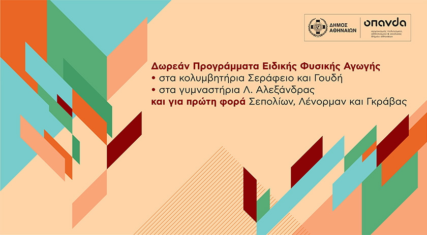 Νέος κύκλος δωρεάν Προγραμμάτων Ειδικής Αγωγής από τη Γενική Γραμματεία Αθλητισμού στα κολυμβητήρια και τα γυμναστήρια του Δήμου Αθηναίων | Δηλώστε συμμετοχή!