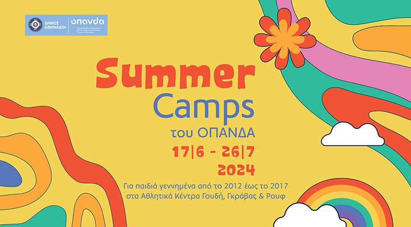 Ξεκινά την Τρίτη 28 Μαΐου 2024, η υποβολή αιτήσεων για τη συμμετοχή μαθητών δημοτικού (παιδιά που έχουν γεννηθεί από το 2012 έως το 2017) στα καλοκαιρινά camps, που διοργανώνει ο Δήμος Αθηναίων, μέσω του Οργανισμού Πολιτισμού, Αθλητισμού και Νεoλαίας του Δήμου Αθηναίων (ΟΠΑΝΔΑ), στα αθλητικά κέντρα Ρουφ, Γουδή και Γκράβας, από τις 17 Ιουνίου έως και τις 26 Ιουλίου 2024.