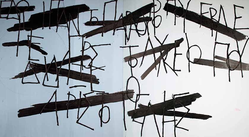 Όπως γράφει η επιμελήτρια της έκθεσης: «Η τέχνη του Κυριάκου Μορταράκου αρθρώνεται ως ένα ιδιότυπο, προσωπικό εικαστικό σύμπαν, όπου ο γραπτός λόγος συχνά υποκαθιστά την εικόνα. Χαρακτηρίζεται δε, για τη διακριτική αλλά στιβαρή παρουσία μιας υλικότητας που ενισχύει την οπτική αφήγηση. Με μιαν προκλητική αφαίρεση της ζωγραφικής αφήγησης και την ένταξη στη ζωγραφική επιφάνεια «χειρόγραφων» σημειώσεων και αριθμών και αντικειμένων, θίγει ζητήματα υπαρξιακά, όπως ο χρόνος, η υπόμνηση, η απώλεια, η φθορά, αλλά και καλλιτεχνικά, όπως είναι οι πρακτικές αναπαράστασης, το πεδίο, ο ρόλος και ο λόγος της ζωγραφικής σήμερα. Το πλαστικό ιδίωμα του Κυριάκου Μορταράκου διαμορφώνεται από την αξιοποίηση ως εκφραστικών μέσων, πέραν του χρώματος και των αντικειμένων που ενίοτε επικολλά ή ενθέτει στη ζωγραφική επιφάνεια, και της γραφής, της διαγραφής και της μουτζούρας. Τα έργα του λειτουργούν ως σελίδες ενός προσωπικού ημερολογίου. Ως ένα κοινοποιημένο ιδιωτικό αρχείο μνήμης, όπου η αποτύπωση -με εικαστικό και γραπτό λόγο- μιας προσωπικής ανάμνησης, ενός ίχνους, μιας στιγμής, μιας ημέρας ή μιας σκέψης έχουν καίριο ρόλο. Η εμμονή σε μια αφηγηματική ζωγραφική, με αντικατάσταση, ωστόσο, μέρους της εικόνας από το γραπτό λόγο, η δομή της σύνθεσης, με αναφορές σε εσωτερικά αρχιτεκτονικών χώρων και κατασκευές, η ανάγλυφη, σχεδόν τρισδιάστατη χρήση του χρώματος, οι προσωπικές σημειώσεις, τα γράμματα και οι αριθμοί, προβεβλημένα εξ ίσου με τα ζωγραφισμένα αντικείμενα-σύμβολα, προσδίδουν στους πίνακες ιδιαίτερο, μυστηριακό και αλληγορικό χαρακτήρα. Μετατρέπονται σε εργαλεία εσωτερικών αναζητήσεων και φορείς νοημάτων και συναισθημάτων».