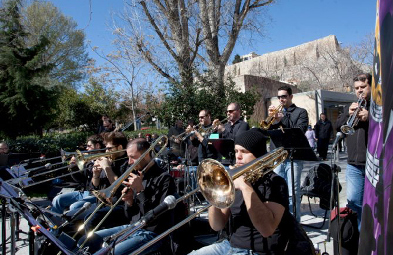 Η Athens Big Band live στον πεζόδρομο της Διονυσίου Αρεοπαγίτου & Μακρυγιάννη