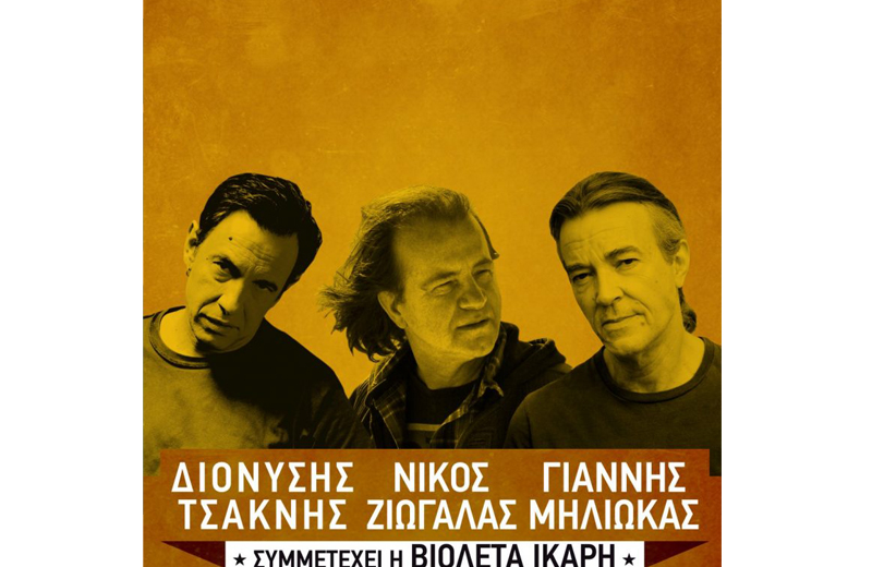 Ένα εκρηκτικό μείγμα γερόλυκων της Rock, οι Διονύσης Τσακνής, Γιάννης Μηλιώκας & Νίκος Ζιώγαλας, με τους καλύτερους Έλληνες μουσικούς,  μας περιμένουν  την Κυριακή 11 Σεπτεμβρίου στις 9μ.μ. στο Φεστιβάλ στο θέατρο του Αττικού Άλσους, που διοργανώνει ο Οργανισμό Πολιτισμού Αθλητισμού και Νεολαίας του Δήμου Αθηναίων, με την υποστήριξη του Κεντρικού Τομέα Αθηνών της Περιφέρειας Αττικής, τους. Ένα πρόγραμμα από τρεις μεγάλους τραγουδοποιούς, με τραγούδια διαχρονικά που δεν έχουν πάψει στιγμή να ακούγονται από τα ραδιόφωνα και τις παρέες, με μουσικές εκπλήξεις που διαδέχονται η μία την άλλη. Μια μουσική παράσταση που μας προκαλεί να τραγουδήσουμε, να θυμηθούμε, να ταξιδέψουμε, να ξεχάσουμε, να γελάσουμε. Μαζί τους τα τελευταία χρόνια είναι η Βιολέτα Ίκαρη, μια νέα, πολύ ταλαντούχα κι ανερχόμενη τραγουδοποιός. Ένα είναι σίγουρο. Τα αγαπημένα τραγούδια έχουν λόγο ύπαρξης και είναι παντός καιρού. Γενική είσοδος: 3 ευρώ Κρατήσεις – αγορά εισιτηρίων: Στο τηλέφωνο 211 1000 365 & www.ticket365.gr fassa_logo_RGB Εισιτήρια θα πωλούνται την ημέρα της παράστασης στο ταμείο του θεάτρου 19:00 – 21:00. Θέατρο Αττικού Άλσους:  Είσοδος από την οδό Καρπενησιώτη, περιφερειακός Γαλατσίου (Τουρκοβούνια) Πληροφορίες στα τηλέφωνο 210 5284800,  210 5284851 – 853 & 854 και  www.opanda.gr XOPHGOI_dt