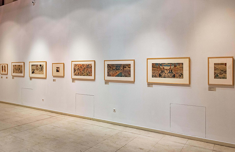 Συγκεκριμένα, παρουσιάζονται 68 έργα του Μουσείου, πρωτότυπες έγχρωμες ξυλογραφίες των μεγάλων εκπροσώπων του Ukiyo-e, του σημαντικότερου ιστορικά καλλιτεχνικού ρεύματος της Ιαπωνίας, με προεξέχουσα βαρύτητα στο εικαστικό έργο του θρυλικού Katsushika Hokusai (1760-1849), «πατέρα» των σημερινών manga, καθώς και η ιδιαίτερη συνομιλία των δύο πολιτισμών, μέσα από την παρουσίαση του έργου του Έλληνα Λευκάδιου Χερν (Patrick Lafcadio Hearn, 1850-1904), που έζησε στην Ιαπωνία τον 19ο αιώνα και είχε τόσο κρίσιμη επιρροή στην διάδοση της ιαπωνικής λογοτεχνίας και τέχνης, που αναγνωρίστηκε ως «εθνικός συγγραφέας» της Ιαπωνίας.