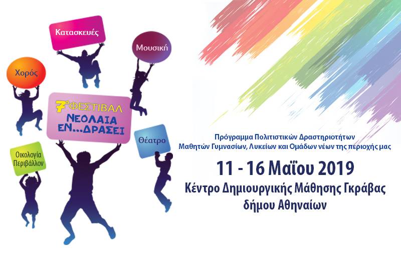 Το Φεστιβάλ «ΝΕΟΛΑΙΑ ΕΝ… ΔΡΑΣΕΙ» επιστρέφει στο Κέντρο Δημιουργικής Μάθησης Γκράβας δήμου Αθηναίων από το Σάββατο 11 έως την Πέμπτη 16 Μαΐου 2019 και διοργανώνεται από τον Σύλλογο «Δράση για την κοινωνία, τον πολιτισμό και την ποιότητα ζωής» σε συνεργασία με τον Οργανισμό Πολιτισμού, Αθλητισμού και Νεολαίας δήμου Αθηναίων και την Γ΄ΕΛΜΕ του Δήμου Αθηναίων.