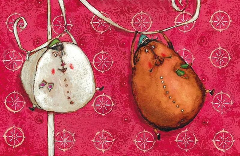 Για χρόνια και χρόνια κάθε Χριστούγεννα, Μελομακάρονα και Κουραμπιέδες τρώγανε τα μουστάκια τους στον πιο αστείο πόλεμο του κόσμου... Μια μέρα όμως μια ξαφνική χιονοθύελλα τα άλλαξε όλα. Ο Φον Κουραμπιές, ο κόμης Μελομακαρόνης, μια νηστική αρκούδα, ένας ξενύχτης σκίουρος, ένας κηπουρός ονείρων, κι άλλοι πολλοί χαρακτήρες στην πιο αλλιώτικη χριστουγεννιάτικη περιπέτεια!
