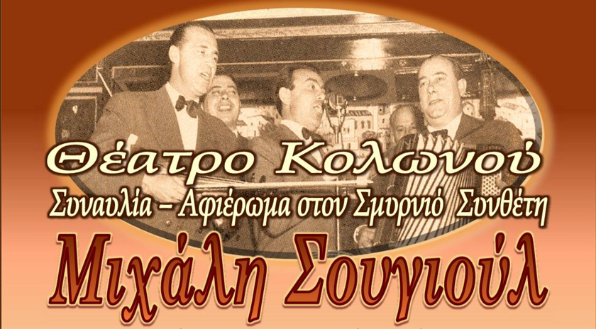 Η Δημοτική Αθηναϊκή Χορωδία και Μαντολινάτα Εξαρχείων-Νεαπόλεως «Ο Διονύσιος Λαυράγκας» έρχεται στο θέατρο Κολωνού με μια Συναυλία-Αφιέρωμα στον Σμυρνιό συνθέτη Μιχάλη Σουγιούλ, την Παρασκευή 10 Σεπτεμβρίου στις 21:00 στο πλαίσιο του Φεστιβάλ Κολωνού του ΟΠΑΝΔΑ.