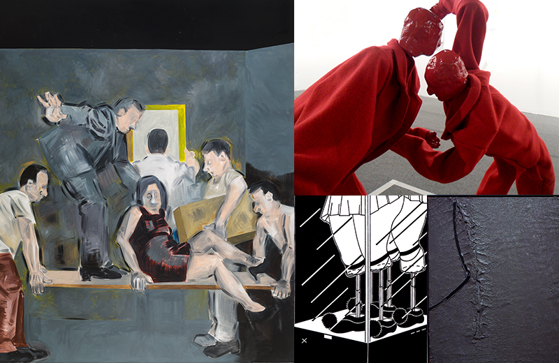 Αυτό που ξεχωρίζει στην επιλογή των τεσσάρων αυτών καλλιτεχνών, είναι η ιδιαίτερη γραφή που μέσα από την πιο σαφή γνώση και πρακτική της αφαίρεσης και του μοντερνισμού στο έργο τους, βρίσκει να στέκεται μπροστά της η ανθρώπινη φιγούρα στο κέντρο του έργου, χωρίς να διεκδικεί καμία επιστροφή στην ανθρωποκεντρική παράδοση. Η μορφή αυτή μένει εκκρεμής κι αφήνει το θεατή σε αμηχανία ανάμεσα στο αφελές, το αστείο, το σατιρικό και το παιγνιώδες του κάθε έργου ενώ αντικαθρεφτίζει συγχρόνως, το κριτικό, το κοινωνικό, το βιωματικό και το τραγικό στοιχείο, που χαρακτηρίζουν τις διαφορετικές προσεγγίσεις των τεσσάρων. Η στάση του καθενός τους είναι εξ ίσου πολιτική και αποστασιοποιημένη, όσο και γεμάτη αμφιβολίες κι ερωτήματα. Η εικαστική τους γραφή παραμένει βαθιά προσωπική και αυθόρμητη, ενώ μετρά παράλληλα με ακρίβεια το πανανθρώπινο δομικό στοιχείο της σύγχρονης εικαστικής γλώσσας.