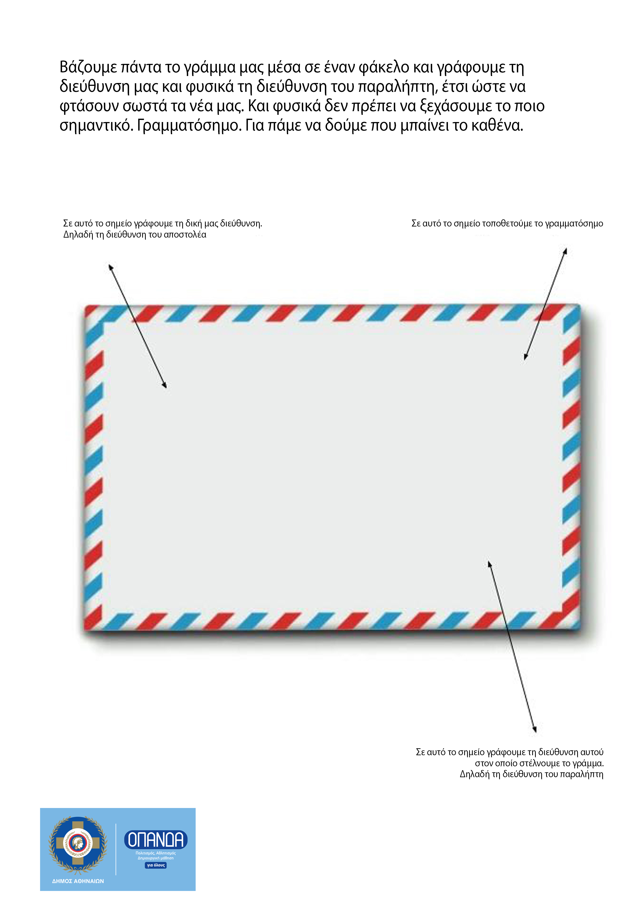 Αφού λοιπόν γράψουμε ένα γράμμα τι κάνουμε μετά; Που νομίζετε ότι το βάζουμε για να το πάμε στο ταχυδρομείο και για να φτάσει στον παραλήπτη του χωρίς να χαθεί;