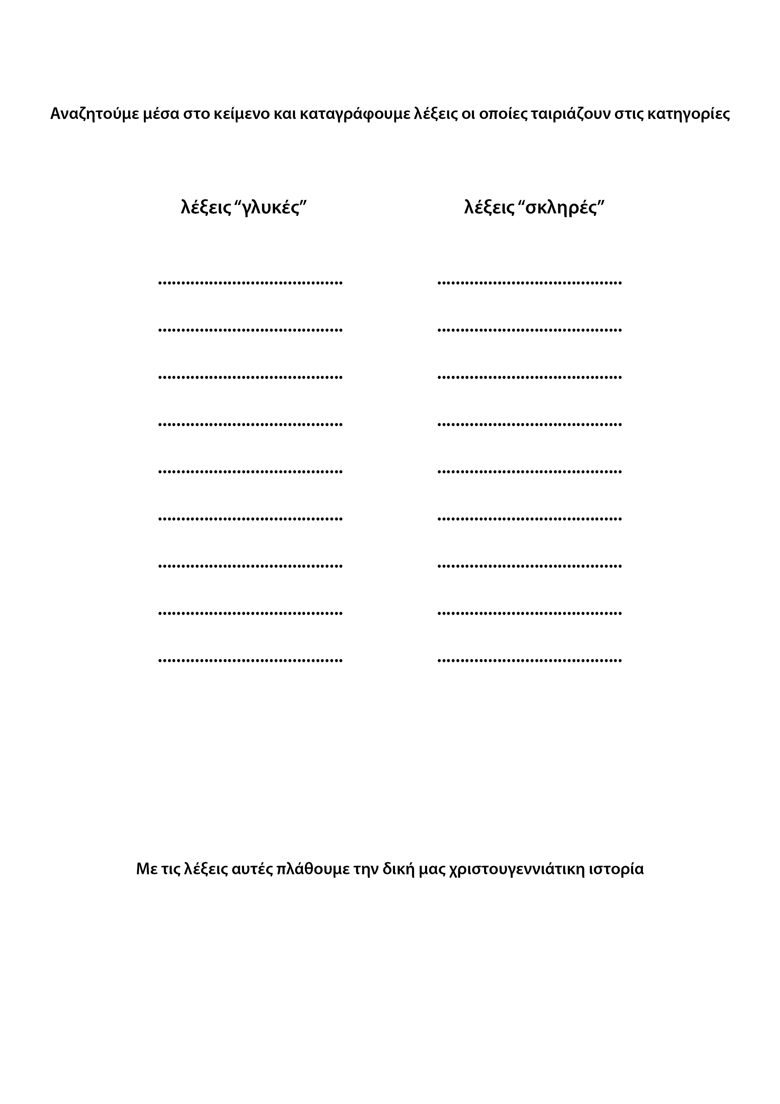 4) Αναζητούμε μέσα στο κείμενο και καταγράφουμε λέξεις οι οποίες ταιριάζουν στις κατηγορίες: