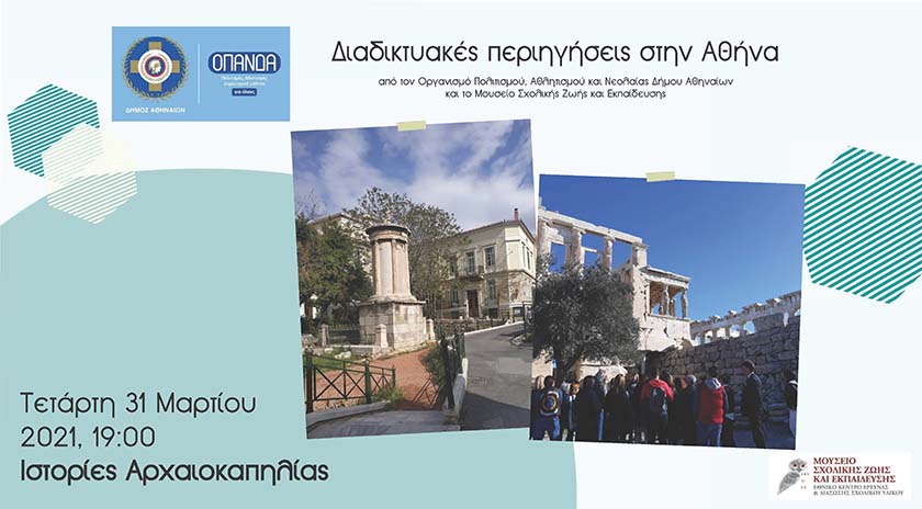 Ο Οργανισμός Πολιτισμού, Αθλητισμού και Νεολαίας του Δήμου Αθηναίων (ΟΠΑΝΔΑ) και το Μουσείο Σχολικής Ζωής και Εκπαίδευσης συνεχίζουν τις θεματικές διαδικτυακές περιηγήσεις στην Αθήνα, την Τετάρτη 31 Μαρτίου στις 19:00 με θέμα «Ιστορίες Αρχαιοκαπηλίας»μέσα από τη σελίδα του ΟΠΑΝΔΑ στο facebook, www.facebook.com/Opanda.gr