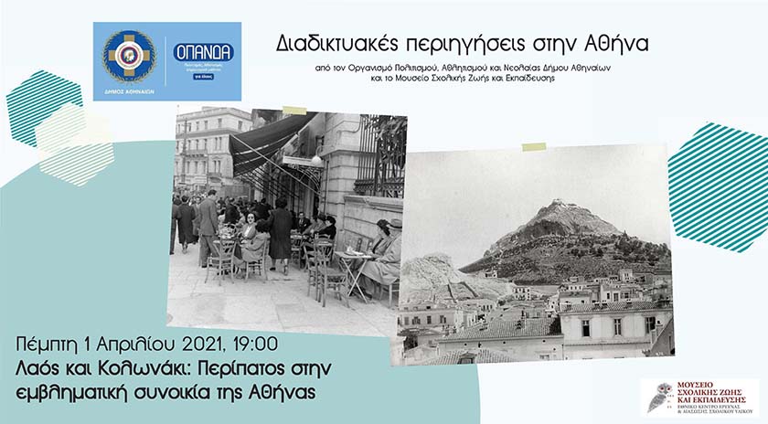 Ο Οργανισμός Πολιτισμού, Αθλητισμού και Νεολαίας του Δήμου Αθηναίων (ΟΠΑΝΔΑ) και το Μουσείο Σχολικής Ζωής και Εκπαίδευσης συνεχίζουν τις θεματικές διαδικτυακές περιηγήσεις στην Αθήνα, την Πέμπτη 1 Απριλίου στις 19:00 με θέμα "Λαός και Κολωνάκι: Περίπατος στην εμβληματική συνοικία της Αθήνας" μέσα από τη σελίδα του ΟΠΑΝΔΑ στο facebook, www.facebook.com/Opanda.gr