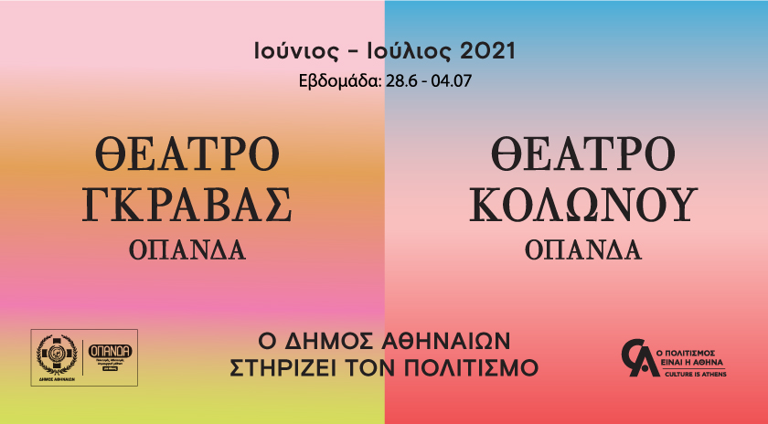 Ο ΟΠΑΝΔΑ συμμετέχει στο πρόγραμμα του Δήμου Αθηναίων Culture is Athens / Ο πολιτισμός είναι η Αθήνα, το οποίο ξεκινάει με τη στήριξη των καλλιτεχνών και των ανθρώπων που εργάζονται στον πολιτισμό και διαθέτει δωρεάν τα Θέατρα Κολωνού και Γκράβας, από 28 Ιουνίου έως 31 Ιουλίου.