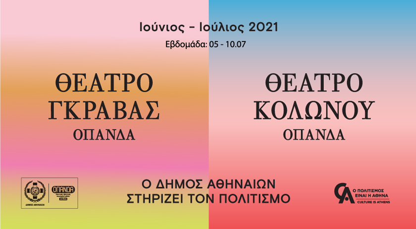 Η μουσική και το θέατρο συνεχίζονται και την εβδομάδα 5 – 10 Ιουλίου στα θέατρα Κολωνού και Γκράβας του Οργανισμού Πολιτισμού, Αθλητισμού και Νεολαίας του Δήμου Αθηναίων (ΟΠΑΝΔΑ).