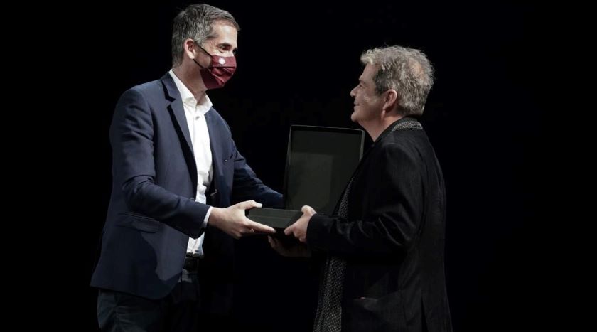 Στη σημερινή τελετή ο Δήμαρχος Αθηναίων Κώστας Μπακογιάννης απένειμε το Βραβείο «Κάρολος Κουν» Σκηνοθεσίας Ελληνικού Έργου στον Πέτρο Ζούλια για την παράσταση «Μαρίκα».