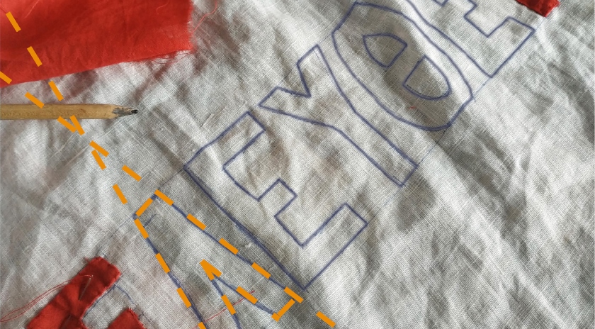 Η εικαστικός Μαιρηλί Χαραμή αναπαράγει μια σειρά από λάβαρα, φλάμουλες, θυρεούς, μπαϊράκια, παντιέρες, φλάμπουρα και σημαίες που σημάδεψαν τον τόπο μας. Άλλοτε σε φυσικό μέγεθος, άλλοτε σε αναλογία.