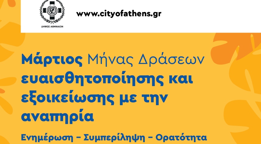 Ο Δήμος Αθηναίων έχει ορίσει τον Μάρτιο ως “Μήνα Δράσεων Ευαισθητοποίησης και Εξοικείωσης με την αναπηρία”.